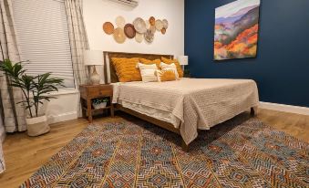This is not your typical farmhouse. You will find pops of color, fun artwork and clean uncluttered spaces. It's a cozy house with a fresh vibe.
