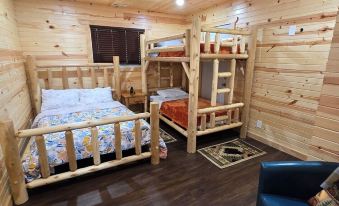 We loved staying here with our extended family. We had the kids stay in the smaller cabin and the adults in the main house. The kids loved playing football in the yard, sitting in the hot tub and sitting around the fire making smores. It was close to the water parks and plenty of other family fun. It was nice and clean and stocked with kitchen supplies, so we were able to cook some meals there. We loved going outside at night and seeing the fireflies. We definitely recommend staying here. The host was friendly and helpful.