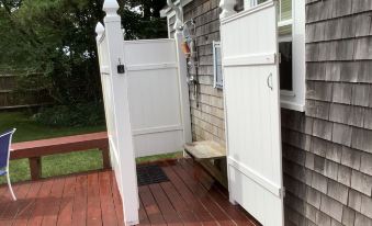 Mid Cape classic beach cottage featuring 3 bedrooms and a four season room with windows all around and a comfortable futon sofa. Each bedroom and family room are equipped with ceiling fans to take advantage of the cool ocean breeze but window AC units are also In place if needed. Want to relax, play board games or catch up on TV or social media, there is a comfortably furnished living room with large HD Smart TV, cable and wireless internet. Kitchen with compact stove, full size fridge, microwave, dish ware, glass, utensils, coffee maker. A washer and dryer helps you conveniently manage all those beach towels and bathing suits. Beautifully landscaped property with a large private fenced in back yard, deck with patio furniture, large gas grill and a comfortable private outdoor shower. Perfect for small children and pets to play so you can sit back and relax knowing they cannot wander. Walk to Glendon beach and many local restaurants. The shed is full of beach chairs, umbrellas, boogie boards and beach toys with a beach wagon to use for your convenience. Short drive to Sea St, South Village and West Dennis beaches. Dennisport/Mid Cape offers so much locally but is also the perfect launching point for awesome day trips to Wellfleet/National sea shore, Provincetown or ferry to Nantucket and Martha’s Vineyard. Ample parking for 6 vehicles. Beds are left unmade with Bed linen, bath and beach towels available for use. Cottage is professionally cleaned prior to each rental period. Plan to bring consumables such as hand and dish soap, paper towels and trash bags. Trash is picked up from the yard weekly. About pets:Pets allowed: dogs (limit 2 total).About checkOut:Check out before 11:00 AM.About children:Children allowed: ages 0-17.About customRules:Trash is removed from inside the yard (gate opened)W/Sa. Separate trash and recycling. Inspect fence/gate clearance for small dogs.The cottage is cleaned before each use, cleaning fee is added to each booking. Lawn mowed wkly, usually Th afternoon, plan for Kids / dog.,Trash service inside yard (gate opened)W/Sat. Plan for dogs and children or place barrels outside gate. Inspect fence/gate clearance for small dogs.About checkIn:Check in after 3:00 PM.About smoking:Smoking is not permitted.Smoking is allowed outside the home only.About minBookingAge:Minimum age to rent: 21.About events:No events allowed.
