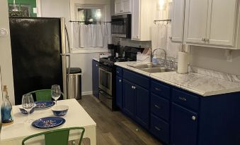 The living room opens to the fully equipped kitchen where you will find updated appliances, counter space, Keurig coffee maker and a small table that extends to accommodate 4.