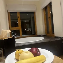 Как только вы войдете в горы, вы почувствуете свежий воздух. Горная дорога сделала восемнадцать поворотов и достигла вершины горы. Я забронировал номер с видом на скалы, и в первый день было солнечно, поэтому мне казалось, что я могу видеть все маленькие горы с первого взгляда. На следующий день шел небольшой дождь, и вся гора наполнилась волшебным духом, придав ей неповторимый аромат. Я участвовал в сборе чая в отеле, и моих рук коснулся аромат чайных листьев Лунцзин. Это пребывание короткое, если у меня будет время, я хотел бы вернуться, чтобы увидеть пейзажи в другие времена года. Спасибо, Ширли, за продуманную организацию. Комната очень красивая, чистая, постельное белье удобное.