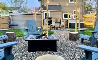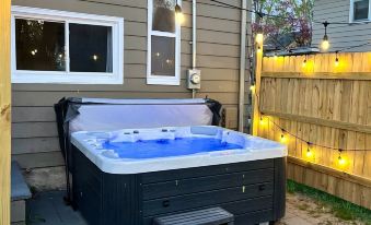 Patio: Off the back of the house you will have full access to a private 6 person hot tub, fully fenced in backyard, jungle gym and a swing for the kids to play, a propane grill and a fire-pit (wood not provided).