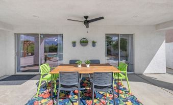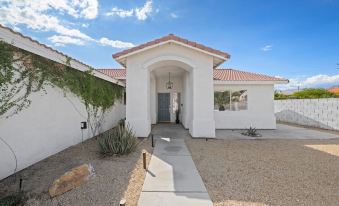 Beautiful desert pool home in a quiet neighborhood near Palm Springs (15 min) and Joshua Tree (35 min). This comfortable, well-equipped home with luxurious outdoor space is perfect for a serene getaway! Enjoy a dip in the pool, a soak in the hot tub, a glass of wine by the fire pit, grilling on the BBQ, playing pool or foosball, working remotely with fast WIFI, or climbing into a plush memory-foam topped bed.