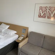 Потрясающий номер, очень тихий. Прекрасный матрас, подушки. Ванна и душ раздельные. Имейте в виду, что автобус-шаттл ходит ограниченное количество часов, см. изображение ниже. Вкусный завтрак, большой выбор. Забронируйте номер или заплатите 24 евро дополнительно.