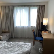 Я попросил поздний выезд, и персонал на стойке регистрации был очень любезен. Комната большая, кровати удобные. Вид со двора удивил. Часто из отелей в аэропортах открываются очень индустриальные виды, но из больших окон я мог видеть поросший травой двор и фламандские дома, залитые вечерним солнечным светом. Хороший. !