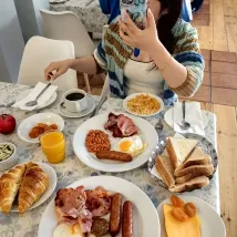 距離小鎮重要區域很近,房間設施簡陋,連張書桌都沒有,不過有兩張床,很軟很舒適,早餐不錯,服務很好,很熱情。附近美景讓人心醉!圖1是早餐,圖其它是附近美景!