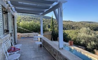 Guests have access to the entire house, to private parking, to storage with washing machine, to the garden, to the veranda with double pergola where it is possible to spend time, to a sun deck and to the swimming pool for exclusive use, with sunbeds and umbrella. The house is surrounded by greenery with the view as far as the eye can see over the expanse of olive trees that reach the sea. The house offers all the comforts both inside and outside. The location is ideal for those who need silence and rest and for those who want to reach the nearest beach (Pantazis) in ten minutes.About pets:No pets allowed.About checkOut:Check out before 10:00 AM.About children:Children allowed: ages 3-17.Non sono disponibili culle e letti singoli.About checkIn:Check in after 2:00 PM.About smoking:Smoking is not permitted.About minBookingAge:Minimum age to rent: 18.About events:No events allowed.