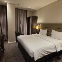 Мы постоянно останавливаемся в этом отеле при долгих стыковках в Дохе.Могу сказать,что как отель на ночь-идеально!Запрашивает в бронировании сразу некурящий номер.Заселение проходит очень быстро, персонал приветливый,услужливый,работают быстро!В отеле всегда чисто.От аэропорта буквально 10-12 минут, пробок не бывает на этом отрезке. И,самое главное, конечно это матрасы и постельное белье,которое идеально белоснежное и прямо "хрустит"!Подушки отличные.Отключаешься моментально и хорошо спишь все время, для меня это принципиально!В номере бутылки воды,чайник,чай есть.