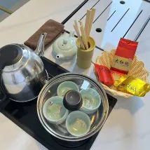 Ответ от объекта размещения: 慢拾光高級行政公寓按照高標準打造,配有中式精緻自助早餐,健身房,品牌洗漱用具,定做高級護脊床墊,記憶枕芯,床上用品,封包毛巾。有一室一廳茶藝房,一室一廳閲覽羣書房,兩室一廳茶藝房等多種房型。慢拾光高級行政公寓每間房有配備獨立的品牌洗衣機,冰箱和廚房設備。觀景陽台全明通透,清風入室。大型停車場車位數量充足,方便你的出行。行政公寓提供24小時酒店管家式服務,我們始終秉承“衞生乾淨,顧客至上,性價比高”為根本原則!