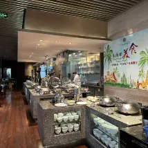 Этот отель комфортабельный, но, к сожалению, лобби-бар не работает. Если вы не приехали сюда за оптовой одеждой, так как оптовый рынок одежды находится прямо по соседству, это не очень хороший выбор для туристов. Однако шведский стол здесь по разумным ценам, расположен на верхнем этаже с прекрасным ночным видом. Здесь большой выбор морепродуктов, а также предлагают китайскую, японскую и западную кухню, а также пиво и спиртные напитки. Вот почему я люблю этот отель.