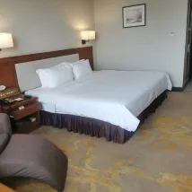 Отель находится недалеко от станции скоростной железной дороги, идти минут 20-30, пробки неудобные, до ближайшей автостанции идти больше 20 минут, ходит только один автобус город или доехать на метро до железнодорожного вокзала. Ресторанов вокруг не так много, да и далековато.Заказывала еду на вынос в день заселения. На следующий день я взял такси до города, и стоимость одной поездки превысила 50 юаней. В отеле есть все удобства, номера просторные и светлые, относительно чистые и опрятные.Обслуживание на стойке регистрации удовлетворительное.