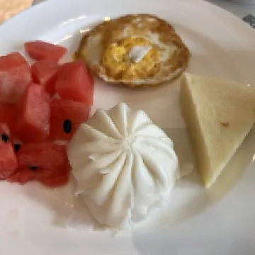 Он находится недалеко от общественного парка, но там не так много всего. У них хорошая еда, но она быстро заканчивается, потому что у них много клиентов, поэтому вам придется завтракать рано.
