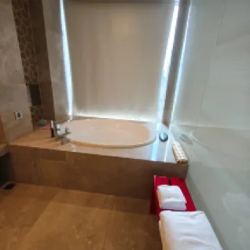 Я остановился в люксе представительского класса. Отель расположен недалеко от станции метро, номер был чистым и просторным, с большой ванной, и отель даже предоставил соль для ванны. В люксе было две ванные комнаты, а цена была превосходной.