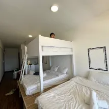 Чистота немного хромает... кухонные принадлежности немного маслянистые. Перед использованием их нужно перемыть. С другой стороны, кухня довольно хорошая, были предоставлены мультиварка, холодильник, микроволновая печь. Установлено как мини-бар. Номер просторный. Удобства в полном объеме. Очень хороший вид из окна. Видно рисовое поле, а также вид на море. Отель также находится недалеко от площади 88... лучший десерт можно купить в десертном кафе «Дорогие друзья».. цена также разумная.