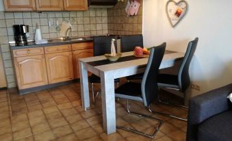 Die Wohnung ist klein aber gut ausgestattet. Der Parkplatz ist direkt hinter dem Haus, man kann durch die Terassentür gehen und sein Gepäck reinholen, das war wirklich eine Erleichterung. Es gibt eine abgegrenzte Terrasse für jedes Apartment, meins hatte eine Hecke als Sichtschutz. Nach hinten raus schaut man direkt auf ein Feld. Ich fand das Sofa super im Gegensatz zu einer anderen Bewertung hier. Die Betten sind 90x200 und stehen voneinander getrennt im Schlafraum. Als ich da war, war Toilettenpapier, Handseife, Spülmittel, Spültuch, Pfeffer und Salz vorhanden, ob das Standard ist, weiß ich nicht. Die Bettdecken sind nicht besonders dick, wer abends friert nimmt sich besser noch eine Wolldecke von zu Hause mit. Das Meer ist zu Fuß ca. 15 Minuten entfernt. Man kommt auf den Strand nur mit der Kurkarte. Es ist ein kleiner Strand mit einem Spielplatz und Zugang zum Freibad (für das man natürlich bezahlen muss). Die Strandkorbpreise liegen für einen Tag bei 12 Euro, für eine Woche bei 60 . Wer ein E- Bike mieten möchte, das geht erst im nächsten Dorf, ich glaube aber, es gibt einen Hol/Bringservice für diese Räder. Im Ort selbst gibt es einen Radverleih, nur eben ohne E. Es gibt mindestens 5 Eisdielen und einen sehr guten Italiener direkt auf dem Weg zum Strand. Die Vermieterin ist sehr nett, die Schlüsselübergabe auch außerhalb der Büroöffnungszeiten war kein Problem. Herzlichen Dank dafür!!!Ich habe mich in der Ferienwohnung sehr wohl gefühlt.