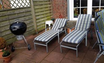 The house has a large south-west terrace with garden furniture which was replaced by new ones in 2017. The Weber grill also gives the outdoor cook plenty of scope. Loungers and parasols are ready for you. Here you can read, laze around, listen to music and unwind.