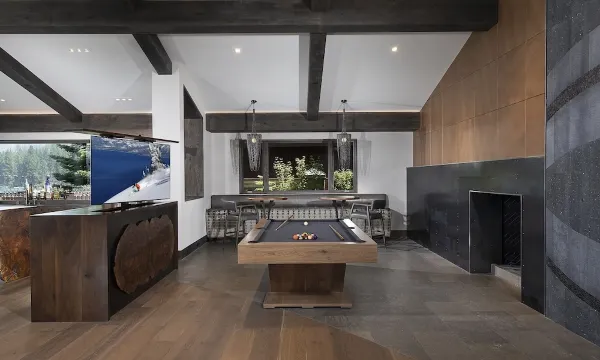 Theater | Steam Room | Sauna | Himalayan Salt Cave | Indoor Jacuzzi The mystique of Villa Harrah comes with true historic accounts and folklore alike. As one of the first casino greats to transform the gaming industry, Harrah filled the house with world-famous entertainers. His high-profile guests included celebrities such as Frank Sinatra and the Rat-Pack, Judy Garland and many others all of whom could utilize the secret tunnel that runs the length of the property to conceal their arrival, party the night away and then relax and refresh in the luxury accommodations that Harrah meticulously oversaw. Villa Harrah was recently reimagined, redesigned and remodeled throughout, and although completely modernized, still whispers of a time-passed with some original features remaining such as the famed secret tunnel that leads to the inviting private beach and pier. The villa has over 20,000 sq. ft. of interior space and impeccable amenities and finishes. The front door opens to an impressive wall of glass that frames a stunning world renowned panoramic lake and mountain view. With an oversized seating area, floating fireplace, expansive dining area, billiards and custom bar, the great room is the ultimate centerpiece for Tahoe glamour and unforgettable entertaining. This remarkable home boasts a dazzling array of high-end details, including walnut and gray elm cabinetry, imported flooring inlays, custom concrete sinks, stone slabs imported from Brazil, European fumed oak floors, leather and steel railings, and horse hair murals. There are seven ensuite bedrooms including a bunk-room that sleeps twelve. Each bedroom was specially designed to maximize a spectacular view of the Lake. The villa is filled with resort style amenities such as a full spa that includes a steam room, sauna, jetted bath, cold plunge, a Himalayan Salt Cave, and a hair/nail salon. In addition, there’s a home theater, retro-style wet bar, spacious terraces and a lakeside pool.