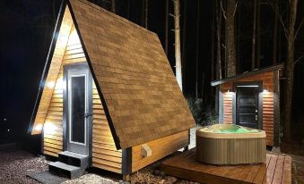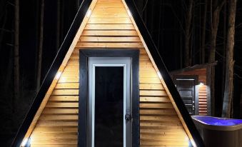 Glamp in this Cozy Tiny A-Frame Cabin: Electricity, Heating, AC, Wi-Fi & Hot Tub