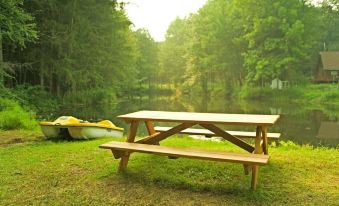 Step into our enchanting A-frame cabin, cradled within 4.56 acres of natural splendor. Embrace the symphony of chirping birds and the gentle rustle of wildlife as you awaken to breathtaking pond views. With modern amenities like electricity, heating, AC, Hot Tub and WiFi, indulge in a harmonious blend of rustic charm and contemporary comfort. Take to the water with our paddleboat, go fishing, then gather around the flickering flames of the fire pit for nights filled with tales and melodies under the stars.