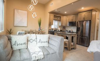 Our casita boasts a fully equipped kitchen, complete with modern appliances, so you can easily prepare your favorite meals and snacks. The dining area is ideal for enjoying leisurely meals together, making you feel like you're dining in your own home.