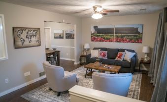 NEWLY RENOVATED, RARE 4 Bedroom ranch near ARK Encounter. No Steps. Nice neighborhood. Extremely comfortable beds. (same beds we own personally) Plenty of space for your group and/or share with multiple families. Enjoy a complimentary, fully stocked, coffee/tea bar that includes to-go cups! Only 1 mile from restaurants, groceries, gas, etc. Enjoy a spacious 1/2 acre flat yard to relax after your trip to the ARK or Creation Museum. Looking for a smaller space? Owner also owns The Paris Street House. Link: https://www.homeaway.com/vacation-rental/p4839499 About pets:No pets allowed.About checkOut:Check out before 11:00 AM.About children:Children allowed: ages 0-17.About checkIn:Check in after 4:00 PM.About smoking:Smoking is not permitted.About events:No events allowed.