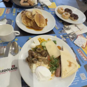 Что может быть лучше чем посещение Леголенда для ребёнка? Только ночёвка в тематическом отеле Леголенд совместно с посещением Леголенда. Дети в восторге, взрослые довольны. Парк Леголенд находится достаточно на удалении от центра Дубая, поэтому очень удобно приехать заранее в отель Леголенд, насладиться его атмосферой, искупаться в бассейне, погулять по территории, занять детей тематическими ивентами с аниматорами. Утром следующего дня позавтракать и полными сил отправиться в Леголенд, который находится прямо за воротами отеля. Номер был чистым, завтрак был вкусным, бассейн прохладным. Мини подарки Лего из сундука в номере порадовали детей. Мы брали только завтраки, но уверен ужин тоже был бы отличным. Если ваша семья 2взр + 2 детей, скорее всего выгоднее покупать обед/ужин на месте в отеле, так как при оплате на месте за 1 взрослого, 1 ребенок может покушать бесплатно. А если оплачивать ужины сразу при бронировании отеля, то возьмут оплату как за взрослых так и за детей. Обязательно вернёмся сюда когда ребенок чуть подрастёт, чтобы так же посетить и другие парки.