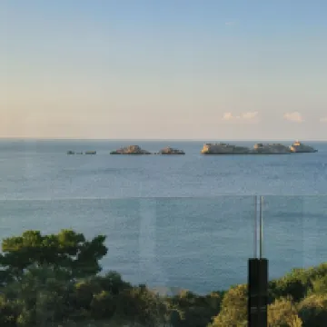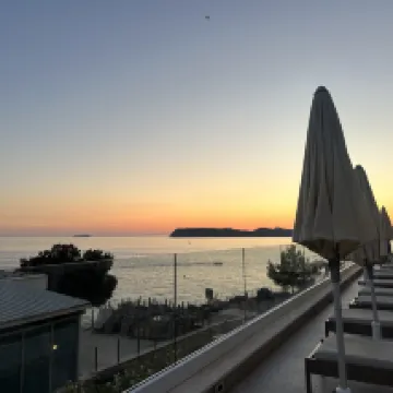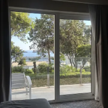 Забронировали семейный номер на две ночи. Из него открывается потрясающий вид на море. Балкон очень удобный и тихий. Завтрак обильный. Есть собственный тихий пляж, где можно купаться и загорать. Очень хороший выбор. Это курортный посёлок. Кроме того, очень удобно добираться на автобусе до старого города. Приятное пребывание.