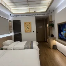 Brand new hotel with great service! We got a free train station pick-up in the early morning and were checked in right away. The hotel room had the Xiaodu voice assistant,which added a lot of fun to the stay. When you say "Xiaodu Xiaodu," it would play music, set alarms and control smart home devices. DuangHuang's Mingsha Mountain starlight concert was also a blast. Truly enjoyed our stay!