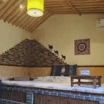 Номер очень большой, с уникальным интерьером. Он находится всего в шести-семи минутах от ворот, ведущих в живописную зону. Внизу есть ресторан. Хозяин был очень рад и угостил нас местным виноградом. Он был очень сладким. Короче говоря, я очень доволен местом, где остановился в этот раз. Надеюсь, снова остановлюсь здесь, когда приеду в Дуньхуан в следующий раз. Ставлю пять звёзд. Это великолепно.