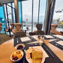 位置不錯,離火車站10分鐘,酒店早餐品種還算豐富,臨近港口,有一個船上餐廳,法餐氛圍都很好。離市中心也很近,五分鐘路程。