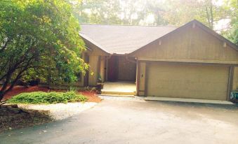 Your next vacation rental home is located on a wooded lot with a winding driveway down to your mountain home getaway. It includes 3 bedrooms and 2 baths with a 2 car garage. All living areas are located on one floor. The master bedroom offers a King sized 12" Memory Foam bed with a private bath, which includes a double sink and a large walk-in shower. The room also has a private office and sitting area for that morning cup of coffee. The master bedroom offers a 47 inch TV with Cable and a DVD player. The second bedroom is a spacious room with a queen sized bed and closet. The third bedroom offers another queen size bed and a closet. These two rooms share a full sized bathroom; which includes a shower/tub combo and a single vanity sink. The house offers complementary High Speed WiFi. The living room has a 55 inch SMART TV so you can access your favorite movies with DVD player. A floor to ceiling beautiful stone gas fire place awaits you. Multiple sky lights welcome in the mountain sunshine. Adjoining the great room is a spacious sun-room with room to sit and enjoy the nature views. Off the great room there is a deck with furniture that overlook a wooded nature path to the golf fairway. Bed linens and towels are provided for your convenience. The kitchen provides most staples including a multitude of spices. There are 2 kayaks, 2 bikes, male and female golf clubs, and various fishing gear available to use during your stay.About pets:Pets allowed.No Cats.About checkOut:Check out before 10:00 AM.About children:Children allowed: ages 0-17.About checkIn:Check in after 3:00 PM.About smoking:Smoking is not permitted.About minBookingAge:Minimum age to rent: 21.About events:No events allowed.