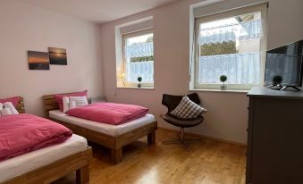 This approximately 85 square meter apartment is ideal for families, since it offers a total of 6 beds. 2 bedrooms with 2 beds each and the spacious living room has 2 more beds integrated. It is located on the ground floor of a small, quiet residential complex in a settlement in Durach-Weidach, about 1 km from Kempten-center. The bus stop is right in front of the house, shops are within walking distance, a parking space is available. The apartment is well equipped, has a terrace, a brand new kitchen, dishwasher, washing machine, microwave, wireless internet and all necessary things for a relaxing holiday in the Allgäu are available, bed linen and towels are provided sufficiently. There is a bathroom with corner bath and a separate guest toilet. From Durach-Weidach you can reach the motorway connection in a few minutes and thus quickly reach the most beautiful hiking and skiing areas, the Allgäu. This is one of my 10 Allgäu holiday apartments. During your stay, I am always available for you and are available for questions or concerns.About pets:No pets allowed, service animals permitted.About checkOut:Check out before 10:00 AM.About children:Children allowed: ages 0-17.About checkIn:Check in after 3:00 PM.About smoking:Smoking allowed: in designated areas.About minBookingAge:Minimum age to rent: 18.About events:No events allowed.