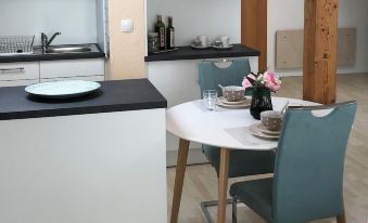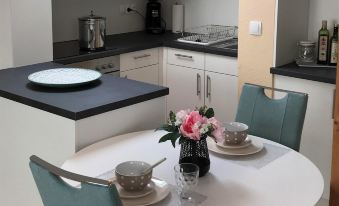 A smart DG-apartment, lovingly furnished. It has about 43 sqm, a sleeping area with a double bed 160 x 200, a living area with sofa, TV, a nice new kitchen with oven, fridge, fully equipped and a dining area with dining table and chairs. The bathroom is beautiful with window, shower, sink, toilet. It is located in a small, well-kept residential complex in Durach-Weidach. Shops are right on the spot, the bus stop is right in front of the house. Wi-Fi is available free of charge, bed linen and towels are provided sufficiently, the cleaning fee is included in the price. During the stay I am always available for the wishes and concerns of my guests. In a few minutes you can reach Kempten-Zentrum. There is no balcony, but there is a seating area in front of the house.About pets:No pets allowed, service animals permitted.About checkOut:Check out before 10:00 AM.About children:Children allowed: ages 0-17.About checkIn:Check in after 3:00 PM.About smoking:Smoking allowed: in designated areas.About minBookingAge:Minimum age to rent: 18.About events:No events allowed.
