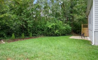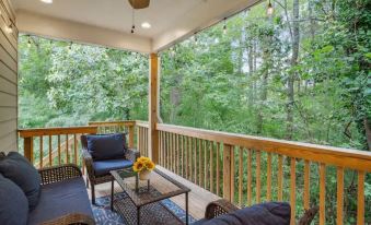 The covered porch in the back is one of our favorite areas in the house. Surrounded entirely by greenery, this is a serene place to relax and enjoy your morning coffee. The patio has additional space to relax and enjoy the beautiful treelined view and watch the birds and squirrels.