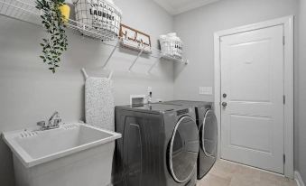 High performing Whirlpool Washer and Dryer. Hypoallergenic All clear detergent, Chlorox bleach, Bounce dryer sheets iron with steam setting and ironing board are provided. The laundry room also has extra towels, hand towels, washcloths, lint roller and emergency sewing supplies. All cleaning supplies are also stored in this room.