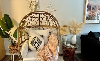 We added boho touches to a homely mountain vibe. Providing a full kitchen with all utilities, 2 bathrooms and 2 large bedrooms all tastefully and stylishly decorated.