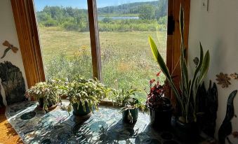 Includes high speed internet, washer dryer, Roku TV. Comfortably sleeps 11 with three bedrooms that sleep 5 and two shared areas that sleep another 7. Flexible bedding arrangements include accommodations for couples. Twin beds are extra long.. Diverse groups of adults and children will find comfort here. Home designed by artist/potter/gardener/yoga teacher with great vibes for relaxation and convenience overlooking the East Machias River.About pets:Pets allowed: dogs less than 20 lbs per pet (limit one pet total).About checkOut:Check out before 11:00 AM.About children:Children allowed: ages 0-17.Children should be supervised at all times..About checkIn:Check in after 4:00 PM.About smoking:Smoking is not permitted.About minBookingAge:Minimum age to rent: 24.About events:No events allowed.