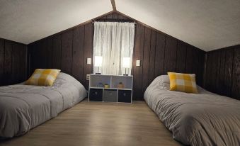 The twin beds in the main floor bedroom can be converted into a very comfortable king-size bed. Please indicate if you need the king conversion when you book.
