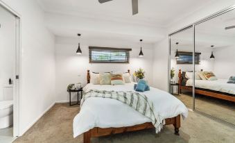• 4 generous bedrooms with ceiling fans (Master with ensuite and Queen bed, other bedrooms offer 2 single beds & 2 double beds). Bedding is provided