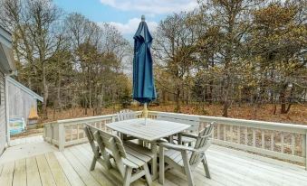 Treat yourself to that much-needed getaway and book this dreamy family-friendly home just a half mile from Great Pond Beach! Find a spacious deck with a convenient outdoor dining area for meals alfresco and an outdoor shower to rinse off the sand after a sun-filled day at the beach. Inside, this retreat boasts a homey open floor plan seamlessly combining the living and dining areas and the kitchen.