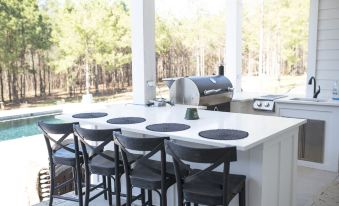 Elegant Masters rental surrounded by woods but with the luxury of being just 5 miles from the Augusta National Golf Club. This 4 bedroom, 3.5 bathroom + HUGE bonus room home sits on 2+ acres. Built in 2020, you'll enjoy all of "new". The back porch over looks a custom gunite pool & beautiful woods behind it. The over sized back porch with masonry fireplace, 80" TV, outdoor kitchen and much more is definitely a staple of this home. Guest cottage available, please inquire for details.About pets:No pets allowed.About checkOut:Check out before 11:00 AM.About children:Children allowed: ages 0-17.About checkIn:Check in after 4:00 PM.About smoking:Smoking is not permitted.About minBookingAge:Minimum age to rent: 25.About events:No events allowed.