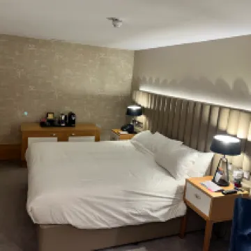 Он расположен в здании университета и относительно тихий. До центра города можно доехать за 20–30 минут. Так называемая кровать размера «king-size» на самом деле представляет собой две односпальные кровати, составленные вместе, с заметным зазором посередине. Если вы привыкли к 1,8-метровым кроватям в пятизвёздочных китайских отелях, это серьёзный недостаток. Создаётся впечатление, что некоторые британские отели жертвуют удобством ради менее приятного отдыха, что разочаровывает.