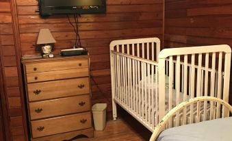 One bedroom has a queen bed and another has a set of twins and a full-sized crib. The third bedroom is small with a bunk bed set. . Guests must bring their own linens.