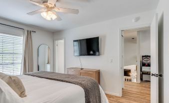 You will be close to everything Edmond has to offer when you stay at this centrally-located home. Inside you will find a fully equipped kitchen, living area, remote work station, Wi-Fi, smart TVs and a skee-ball machine. The bedrooms are designed for restful nights featuring a king bed, a queen bed and a futon in the bonus game room. The outside boasts a charming exterior with a large, fenced backyard. We strive to provide a clean and comfortable experience for you at The Edmond Bungalow.About pets:Pets allowed: dogs (limit 2 total).Dogs need to be under 80 lbs and house trained..About checkOut:Check out before 11:00 AM.About children:Children allowed: ages 0-17.There is a baby/pet gate at the top of the stairs..About customRules:Do Not Use The Fireplace-
