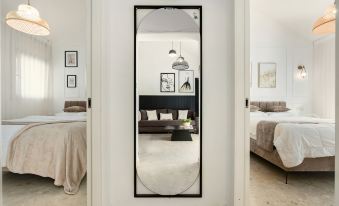 The apartment features two cozy bedrooms, each with a comfortable double bed, ensuring a restful night’s sleep. The living area is thoughtfully arranged with two sofas that convert into double beds, creating additional sleeping space. A well-equipped kitchenette allows you to prepare meals with ease, while the dining area provides a cozy spot to enjoy them.