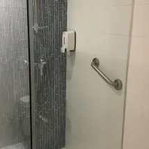 Приготовьтесь к тому, что ваша ванная комната станет скользкой мокрой комнатой, так как уборщики никогда не меняют мокрые полотенца или коврики. Душ быстро переполняется. Кроме того, чтобы правильно встать на унитаз, вам нужно быть ростом 4 дюйма 2 дюйма, поэтому вам придется сидеть на нем боком, так как стена находится прямо перед ним.