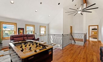 Our multiple recreation areas offer something for everyone to enjoy. The heated garage has a small workout area and plenty of room for all of your outdoor gear. First floor game room includes a grand piano and fully equipped poker table. Upstairs hosts an additional lounge for watching movies, playing foosball and beating the family at board games which are available in the game closet.