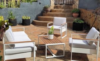 Relaxation areas with views of the garden and rooftop terrace, or private areas on the front patio or back porch, are perfect for relaxing after exploring the island.