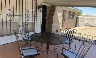 This home is 5 mins from ELP Airport, the most popular malls, restaurants, Marathon Refinery & Ft. Bliss. Minutes from downtown ELP, Chihuahua Stadium, CJS MX. Enjoy a fully furnished kitchen, fresh linens, and lounging areas for family time. Has free Wifi, parking, and hospitals nearby. For bookings for 1 month+, the host must do 2 monthly visits for cleaning purposes. Additional cleaning fee per visit. About pets:No pets allowed.About checkOut:Check out before 11:00 AM.About children:Children allowed: ages 0-17.About customRules:NO Smoking inside the house policy. This includes the use of tobacco, cannabis, and e-cigarettes. Violation of the rule will be charged a $500 fine..A.L.I. Place has strict *** NO PETS ALLOWED*** Failure to comply with this rule will incur a $200 charge.,The late checkout fee is ($99). You may request a late checkout, but it is based on availability..About checkIn:Check in after 3:00 PM.About smoking:Smoking is not permitted.About minBookingAge:Minimum age to rent: 21.About events:No events allowed.