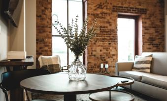 This 2022 newly-renovated boutique nightly rental features a modern industrial feel, plush new amenities, ultrafast Wi-Fi, and a prime location steps away from downtown shopping & dining.